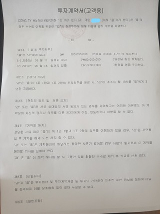 3. 2년 계약 수익 월 10% 배당 (2년 안에 계약 해지시 지불 했던 배당금 제외 원금반환)