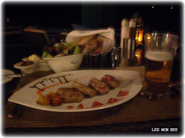 내가 시킨 양 스테이크와 비어한잔 ~ 가격이 상당히 비싸다 , ㅋ ㅇ ㅏ~ 그래도 오늘 스테이크 가격에 리조트 모든 시설 이용