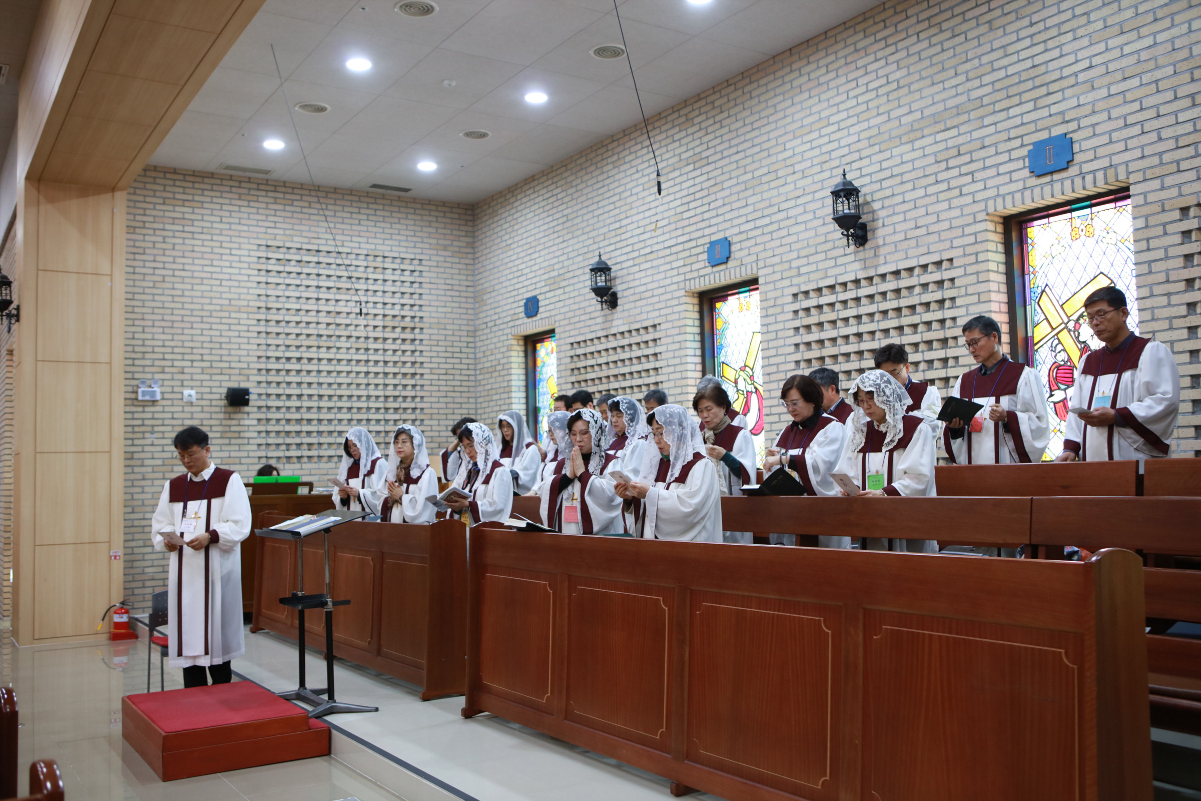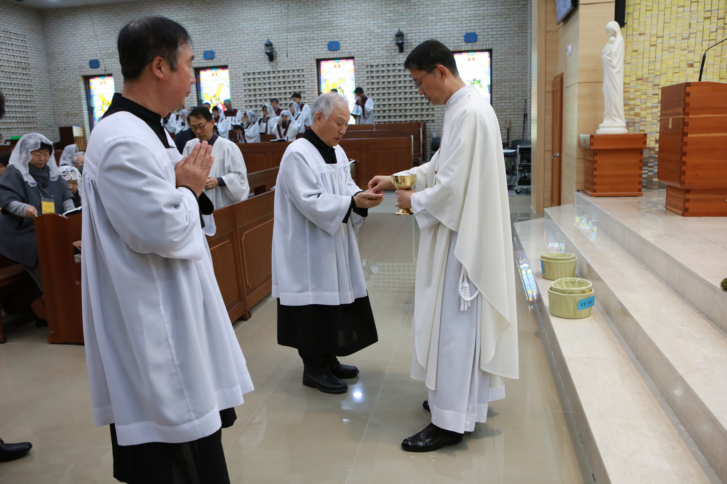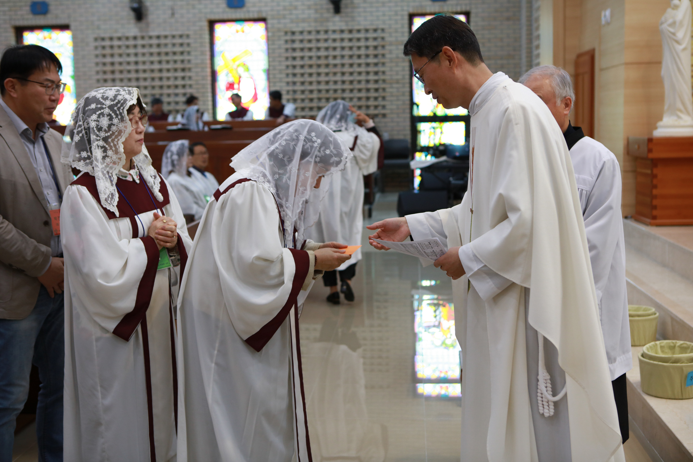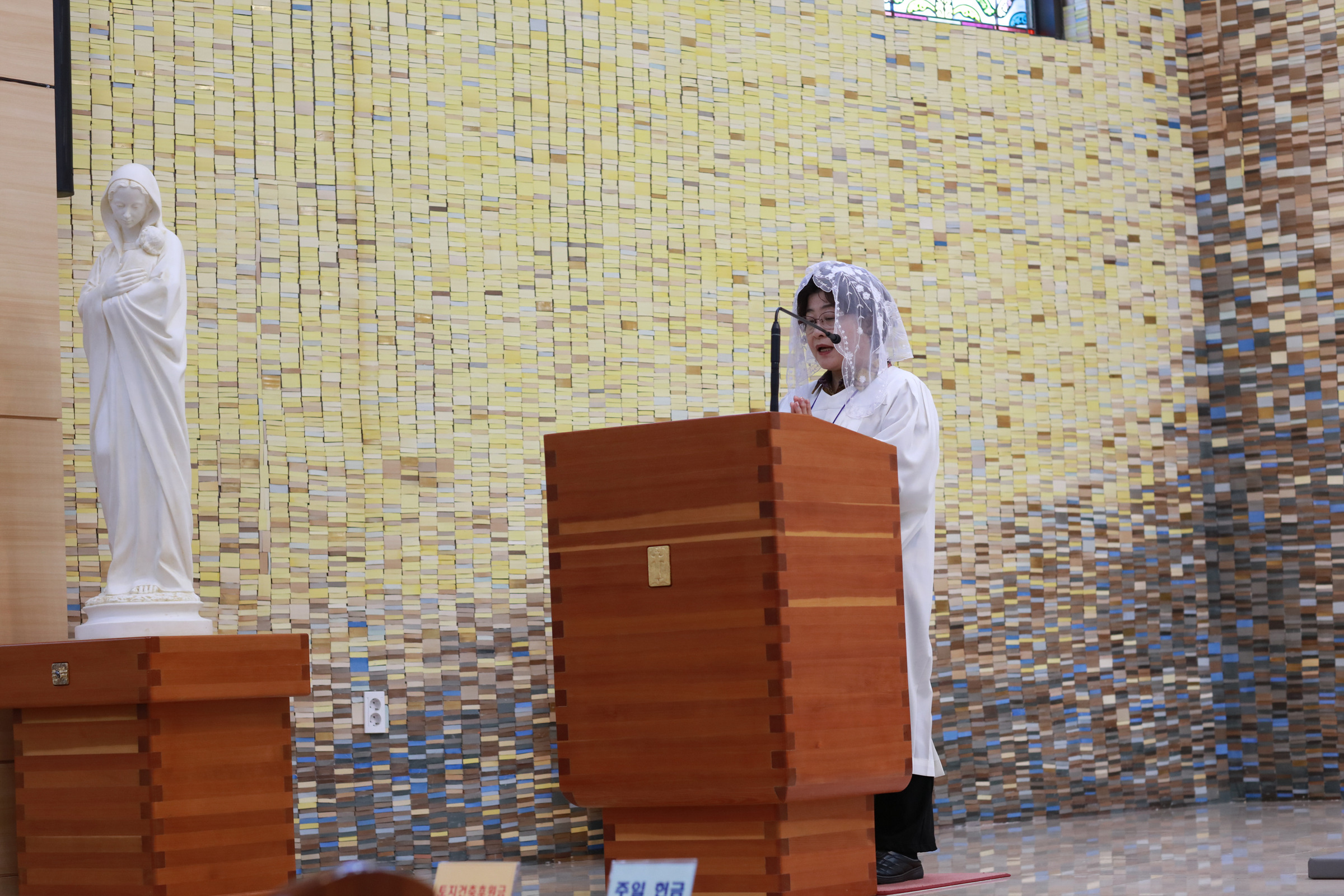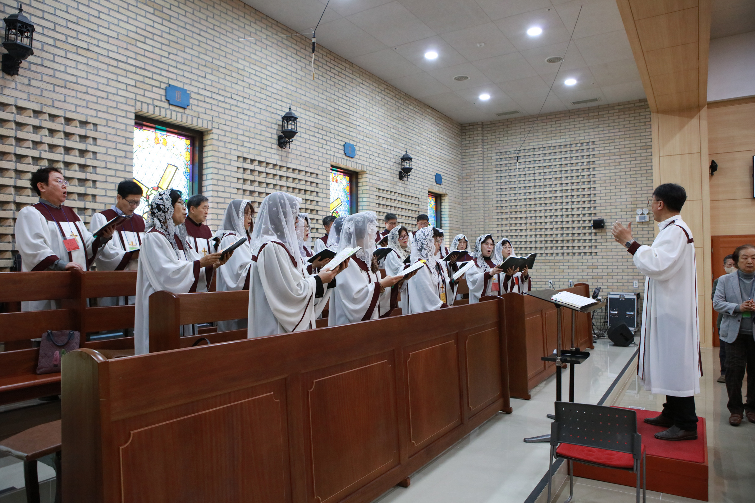 4월 12일 (주일) 오전 10시 30분 김영직 사도 요한 주임신부님 주례로 “하느님의 자비 주일” 미사를 봉헌했습니다. 강론에서 ‘오시어 가운데 서시며 “ 평화가 너희와 함께” 하고’ 함께함을 강조했습니다. 물동이 문제를 풀고 실천한 69명에게 나무로 손수 만드신 성경구 책갈피를 부상하고 로마서 필사를 치하했습니다. 미사 후 성전 입구에서 4 구역 봉사 차 나눔을, 105호실에서 사목회를 했습니다.