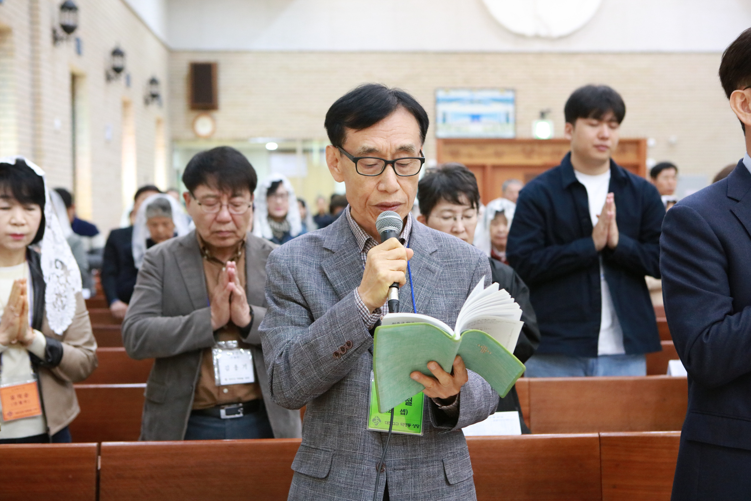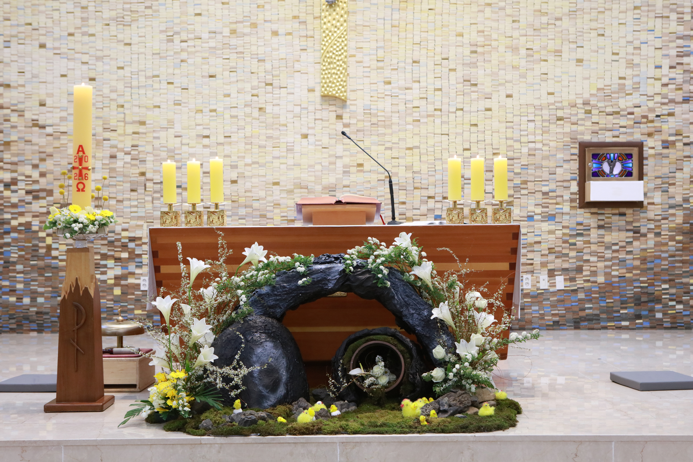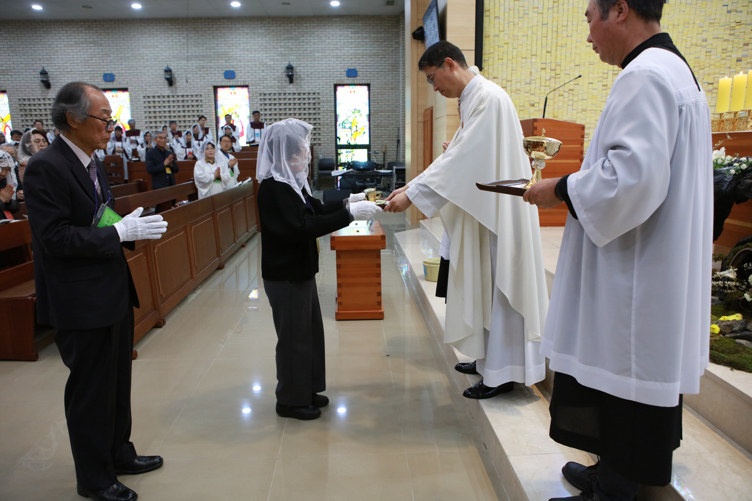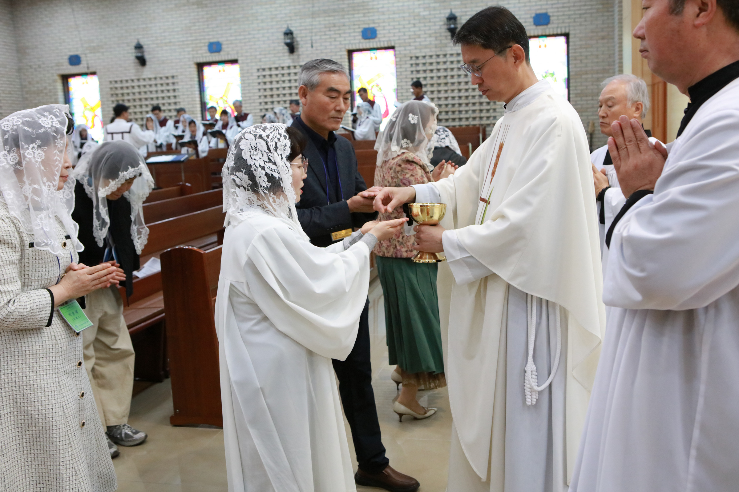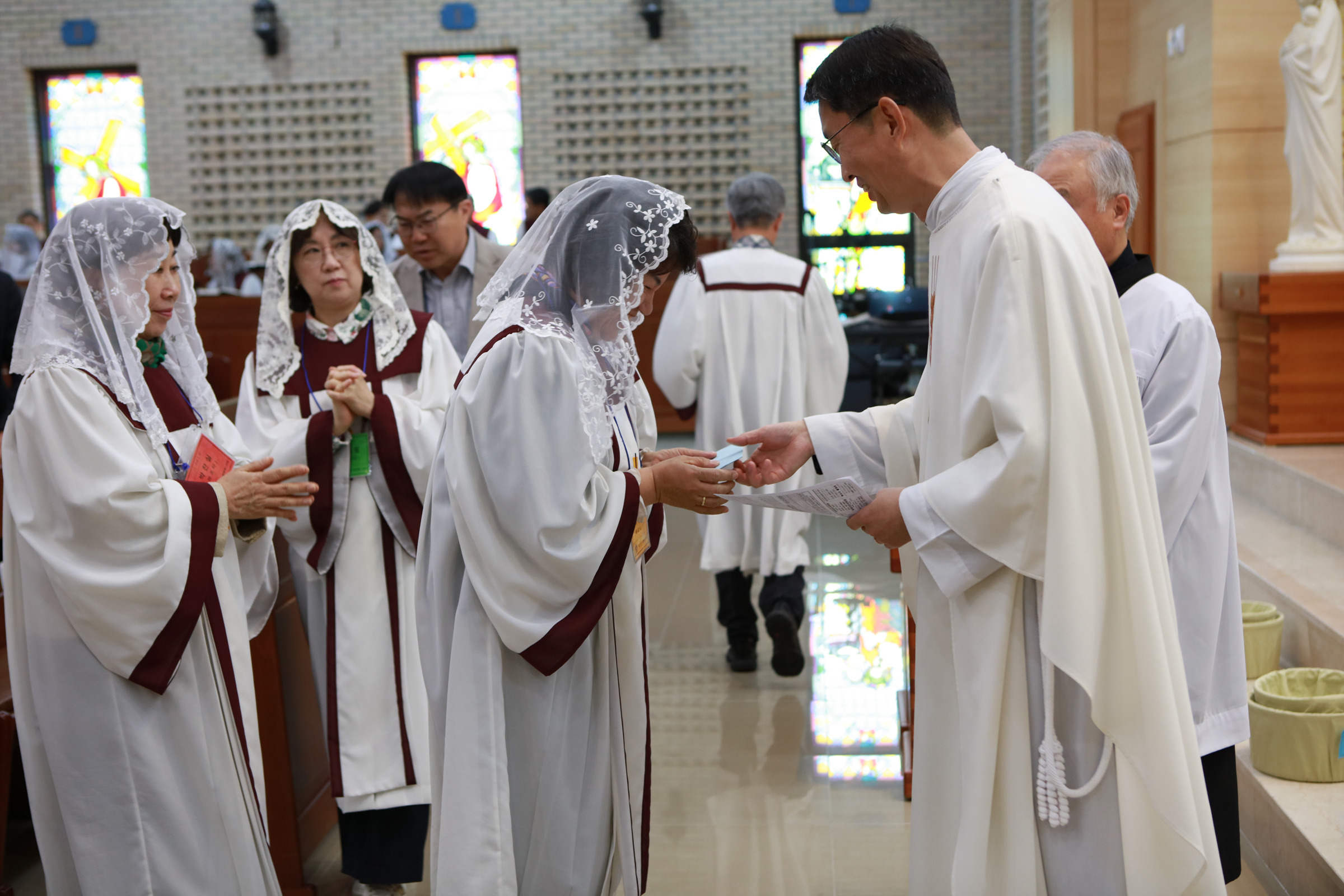 4월 12일 (주일) 오전 10시 30분 김영직 사도 요한 주임신부님 주례로 “하느님의 자비 주일” 미사를 봉헌했습니다. 강론에서 ‘오시어 가운데 서시며 “ 평화가 너희와 함께” 하고’ 함께함을 강조했습니다. 물동이 문제를 풀고 실천한 69명에게 나무로 손수 만드신 성경구 책갈피를 부상하고 로마서 필사를 치하했습니다. 미사 후 성전 입구에서 4 구역 봉사 차 나눔을, 105호실에서 사목회를 했습니다.