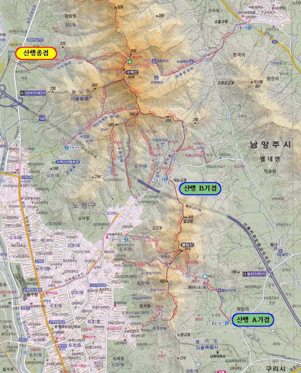 불암산 경유 수락산으로 한바퀴 돌아간다.