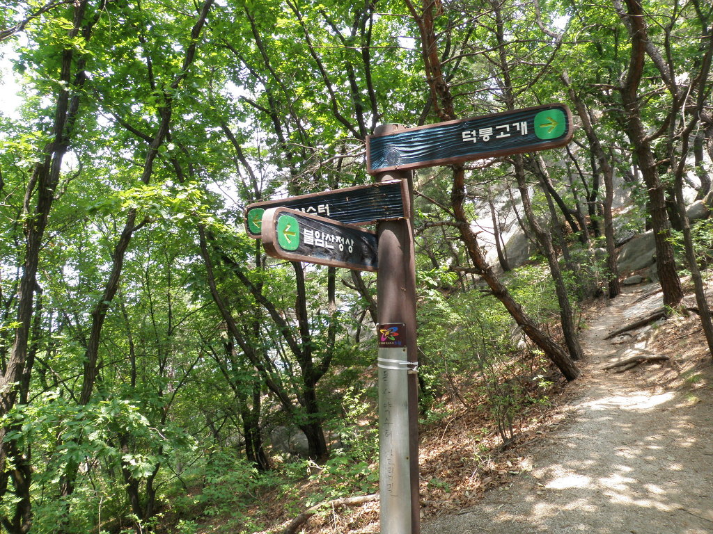 서서히 깔딱이 바위 계단 길을 따라 진행하니 다시 이정표가 나타나고, 왼편은 깔딱고개