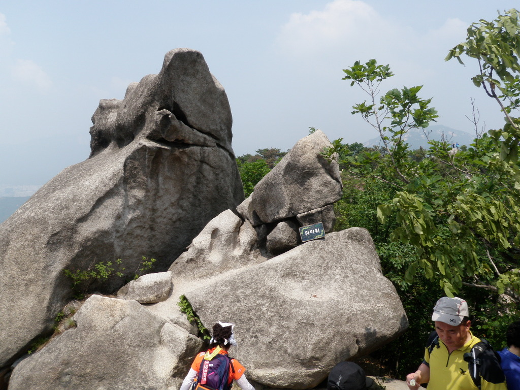 불암산 정상 바로 밑에 뚜꺼비 바위가 있고, 나무계단을 내려서면 쥐 바위가 있다.