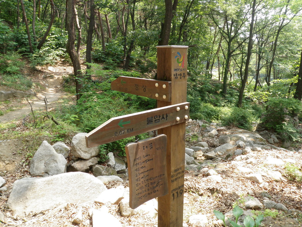 일주문을 지나 불암사 앞에서 오른편 석천암 방향으로 이정표를 따라 진행을 한다.