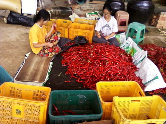 윗사진은 마른고추를 골라내고 있는 사진이네요.