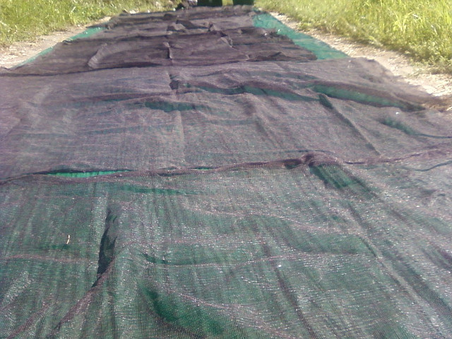 우선 비닐을 깔고 그 위에 까만망을 또 깔았지요.