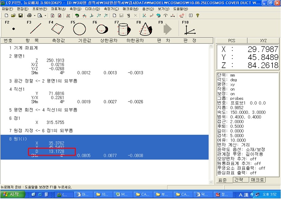 3차원 측정해서,, 이 제품의 내경의 최소지름을 알 수 있는 방법이 있나요..??