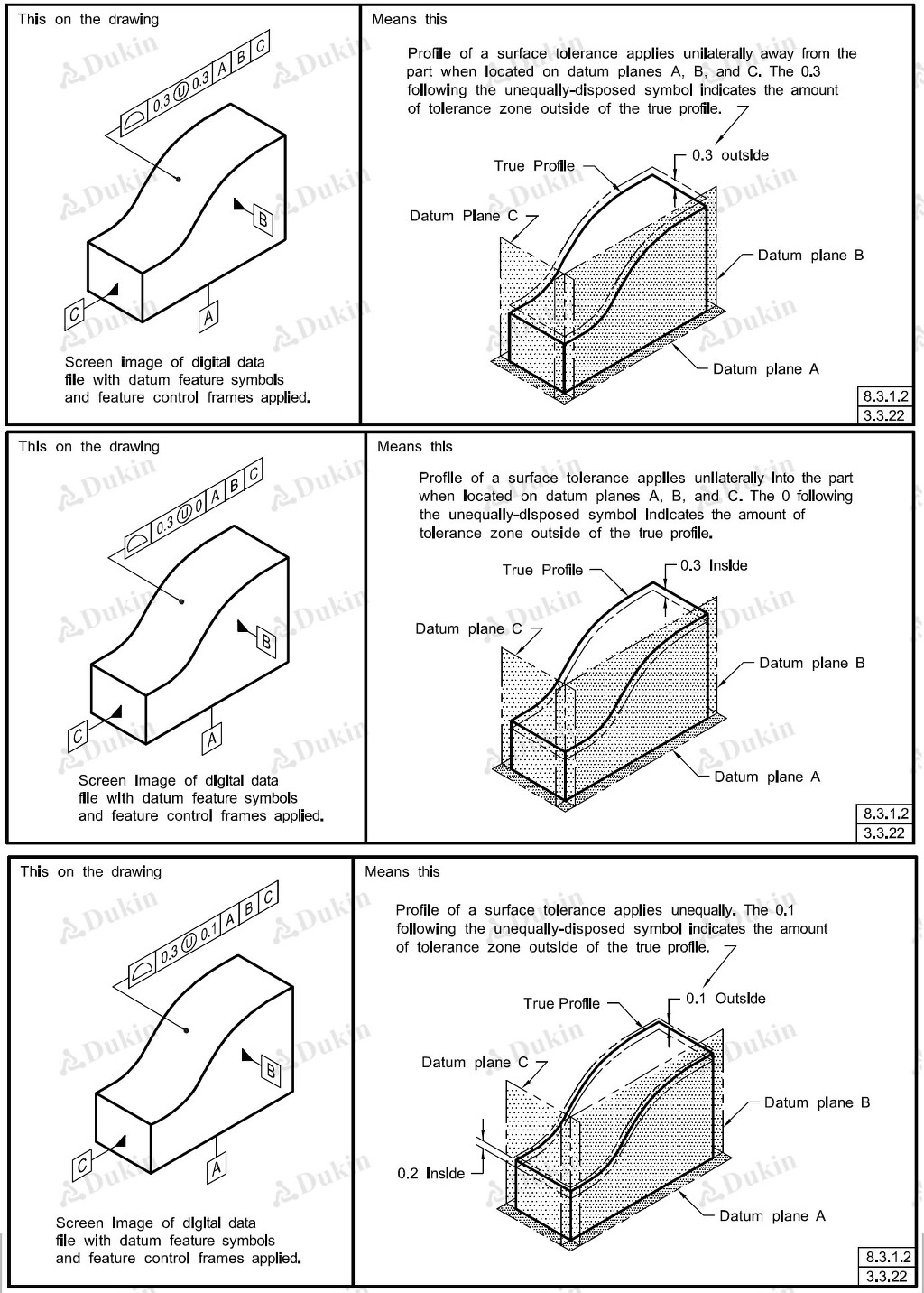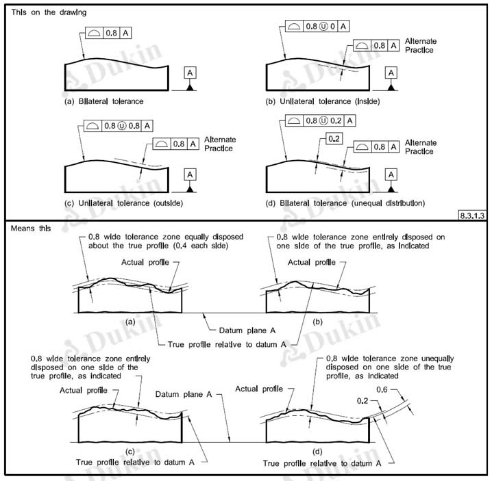 작성자오라클 작성시간 09.09.15 Unequally - disposed 의 약자 U 입니다.(양측 공차 이면서 서로 다른 공차를 부여 합니다.)세번째 그림으로 예를 들면 0.3의 윤곽도 공차에서 소재의 T 내측으로 0.2 를 주고 ,소재의 T 바깥쪽으로 0.1 을 준다는 뜻으로 보입니다.택이님 답변이 늦어 죄송 합니다.오늘에서야..덕인님 께서 알려 주신 내용 입니다.