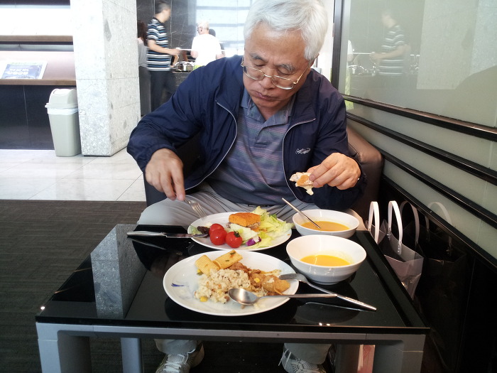 흠~.. 이곳은 부산의 공항라운지에 비해 훨씬 넓은 편이었고, 승객을 위한 뷔페가 준비되어있어 비행기 타기 전에 식사를 할 수 있도록 배려를 하고 있었다. 꽤 넓은 공간에 많은 사람들이 꽉 차서 별로 빈자리가 없을 정도였다. 특별석을 타고 다니는 사람이 이렇게