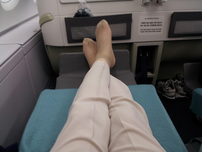 프리스티지 좌석은 다리를 쭉 펼수 있는 공간과