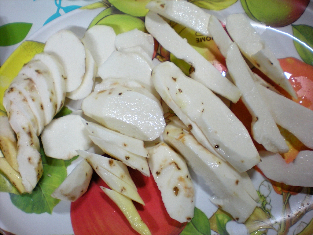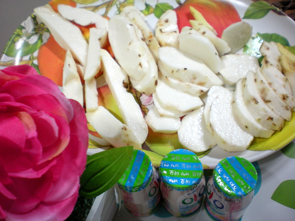 휴롬 원액기를 사용하려 해서 작게 잘랐어요~~생으로 그냥 먹어보니 아삭아삭 맛 괜찮네요 ~