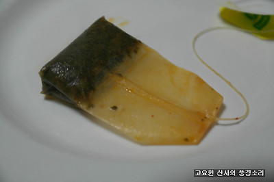 이리저리 휘저어주면 기름이 녹차 팩에 가득 묻어나옵니다.