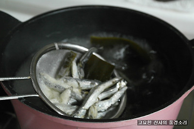 ㉠ 멸치 육수를 먼저 내준다.