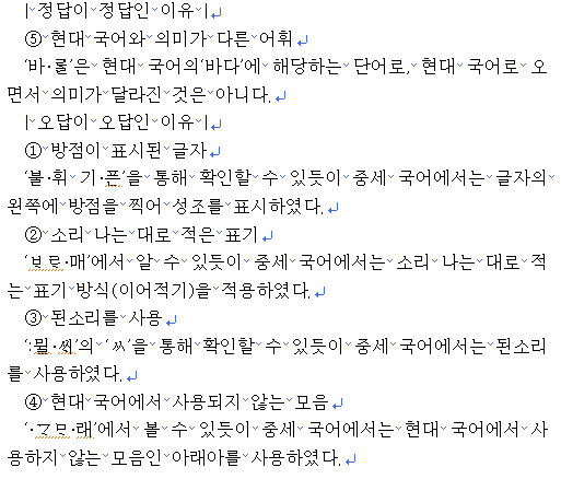16 중세 국어의 특징 파악 답⃞ ⑤