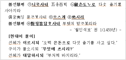 善쎤慧 ㉠니샤 五百 ㉡銀도로 다 줄기 사아지라