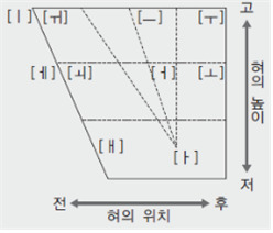 혀의 전후 위치와 입술 모양, 혀의 높이를 기준으로 설정