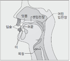 공기가 방해를 받지 않으나 홀로 쓰이지 못하는 소리 예) y, w | |