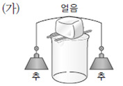 ① (가)에서 무거운 추에 의해 얼음이 잘릴 때, 그 잘리는 부분은 물의 상태로 변화하게 될 것이다.
