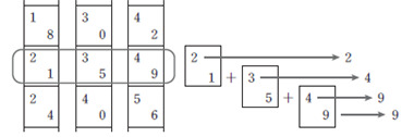 26. (보기) 는 네이피어 막대 7개를 붙여 놓은 것에서 하나의 가로줄을 보여 준다. 계산하려는 문제에 해당하는 것은?