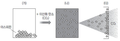 (다): 이산화탄소와 함께 아스피린도 용기를 빠져나가다가 작은 입자가 되는데, 이를 필터로 포집한 것이 아스피린 나노 입자이다.