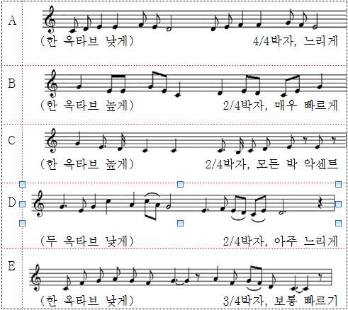 ◦첫 악구 연주 방법: B를 선택, 2/4박자, 보통 빠르기로