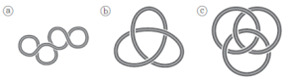 ⓐ와 ⓑ는 양 끝이 연결된 완전한 폐곡선으로 된 매듭이므로 한 줄기를 자르면 한 가닥의 실이 된다. 하지만 ⓒ는 세 개의 원형 매듭이 고리 형태를 이루고 있는 것이므로 한 줄기를 잘랐을 때 한 가닥의 실과 두 개의 원형 매듭이 만들어진다.