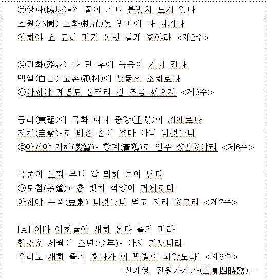 [31~33] 고전시가 – 신계영, ‘전원사시가’