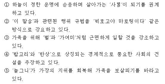 ③ 가족을 위해 ‘벌’과 ‘가여미’처럼 근면하게 일할 것을 강조하고 있다.