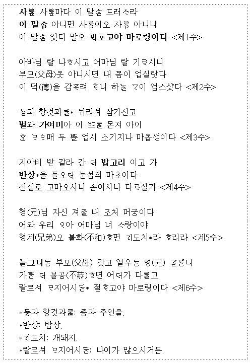 이 말 잇디 말오 호고야 마로링이다 <제1수>