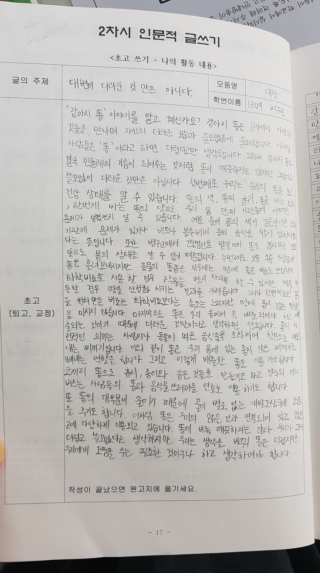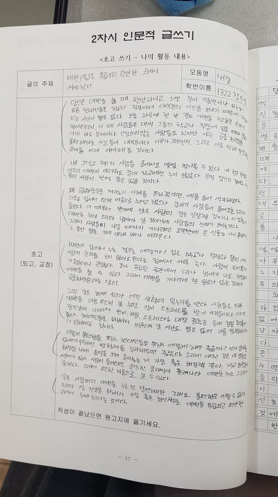 1303 김경현-대장-대변-2차시 글쓰기(과정록) 작성자김경현|작성시간18.09.10|조회수164 목록 댓글 0 글자크기 작게가 글자크기 크게가 1302 권민영1303 김경현1309 박수진1312 서지원1322 장인영 다음검색 현재 게시글 추가 기능 열기 북마크 공유하기 신고 센터로 신고 댓글 댓글 0 댓글쓰기 답글쓰기 댓글 리스트