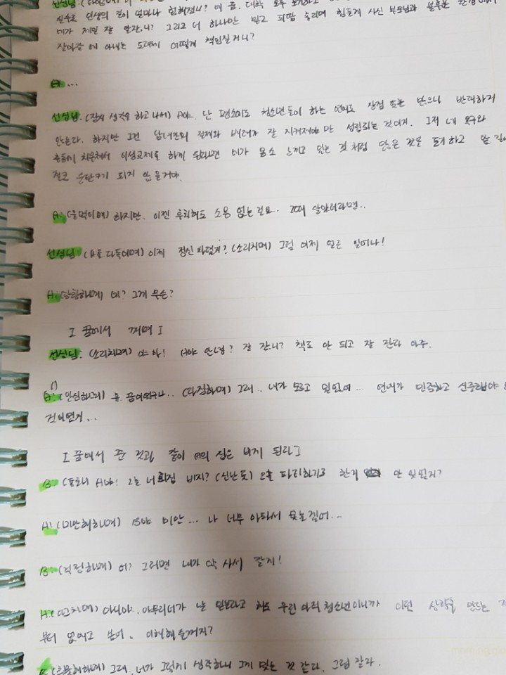 선생님: (타이르며) 이 썩을 놈아.애초에 네가 책임을 못 지겠으면 절제하고 생각을 다시 했어야지! 지금 한순간의 실수로 인해서 인생의 길이 얼마나 험해졌니? 네 꿈, 대학 모두 포기하고 굳은 일 해가며 비극적인 삶을 사는 것은 네가 제일 잘 알잖니? 그리고 너 하나만 믿고 피땀 흘려가며 힘들게 사신 부모님과 불후한 환경에서 살아갈 네 아니는 도대체 어떻게 책임질 거니?