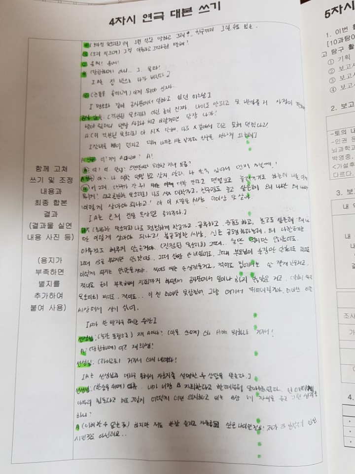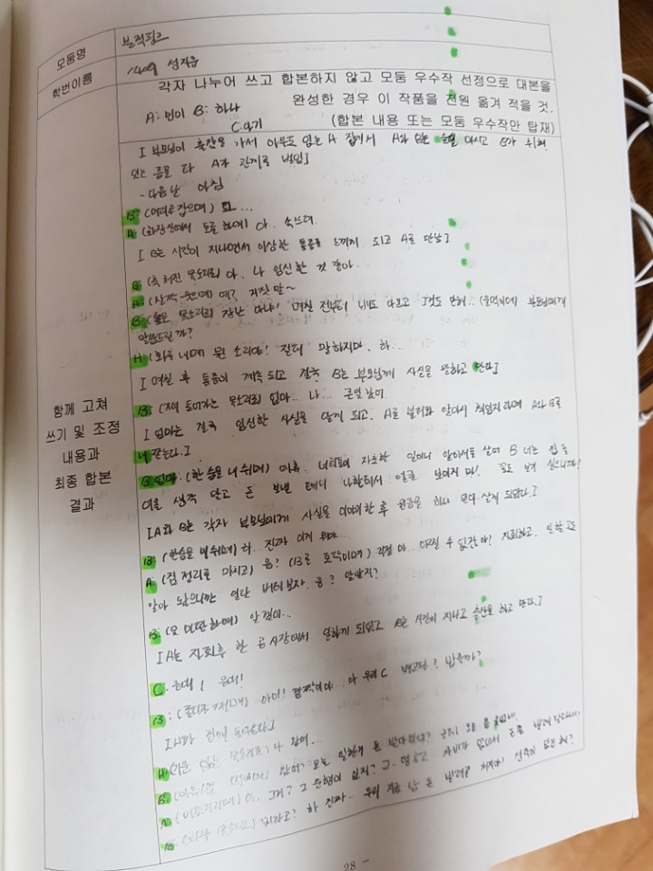 선생님: (소리치며) 야아! 민아 안녕? 잘 잤니? 책도 안 피고 잘한다 아주.