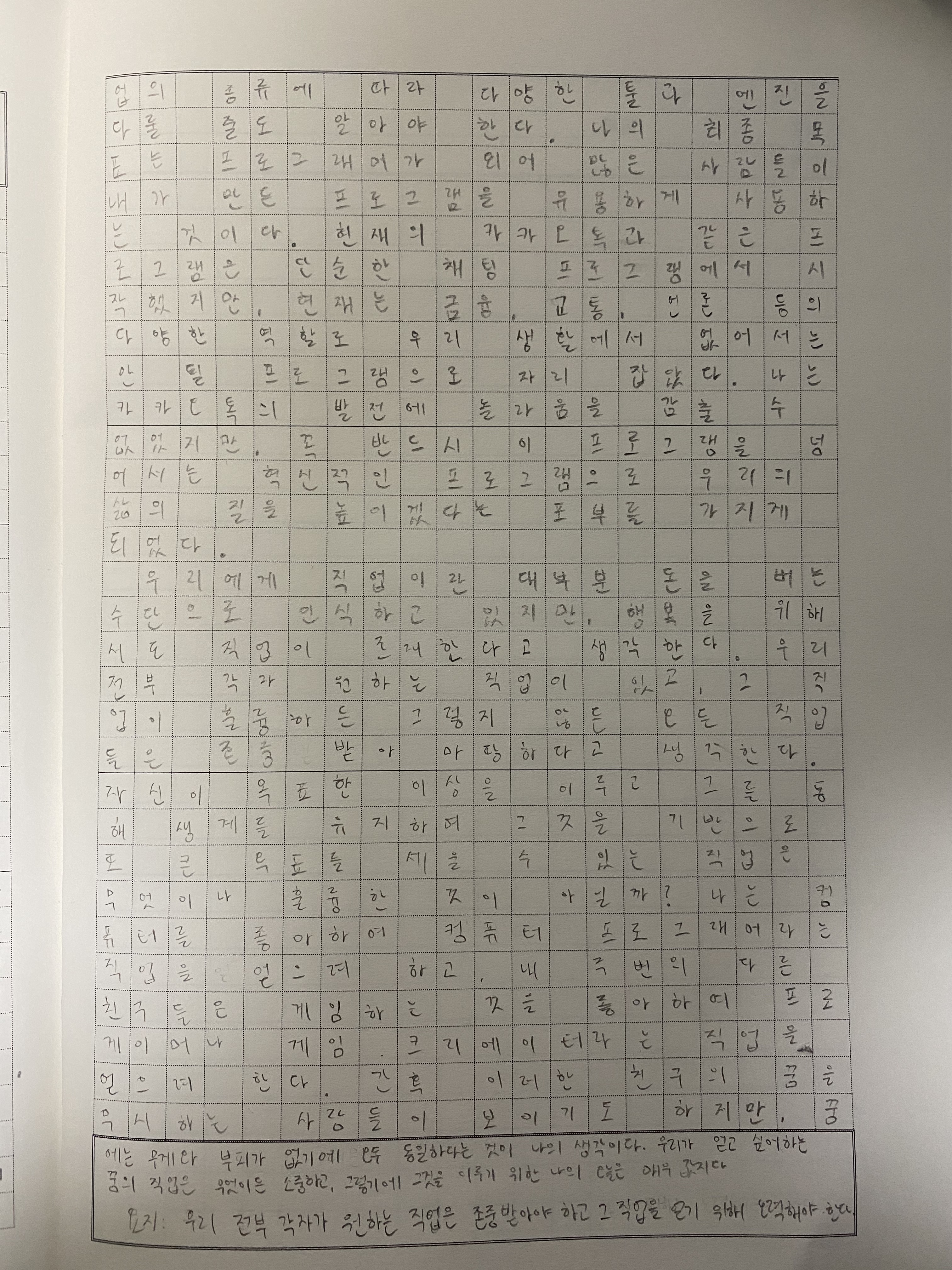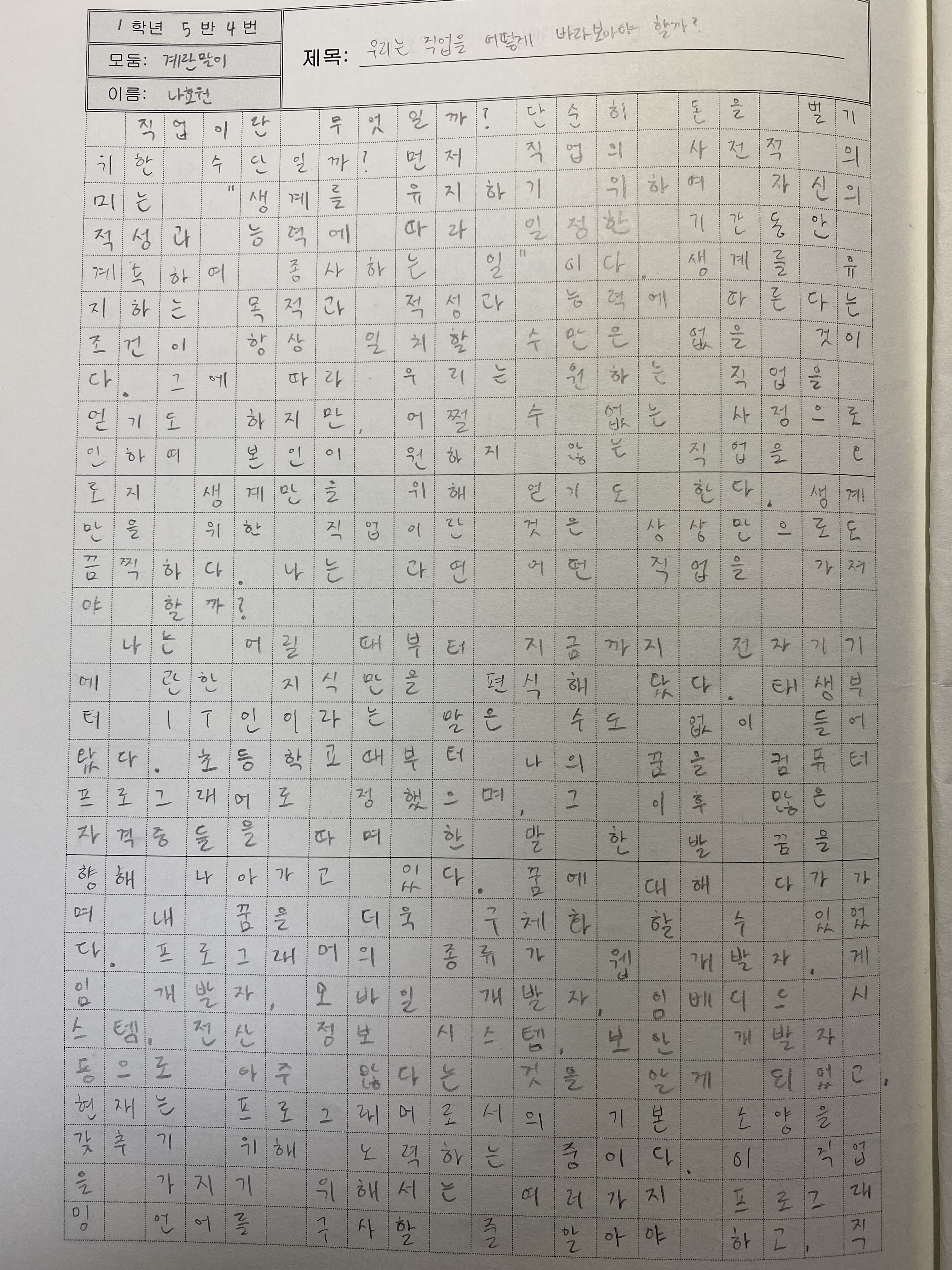 요지 : 우리 전부 각자가 원하는 직업은 존중받아야 하고 그 직업을 얻기 위해 노력해야 한다. <1428자>