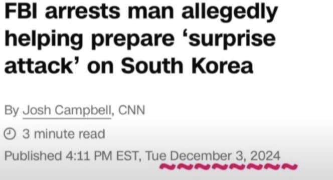 - 즉, 한국 시간으론 12월 2일이 되는 셈이고, 이 기사가 나오고 몇 시간 뒤에 윤석열 대통령에 야간에 비상계엄령을 선포 했어