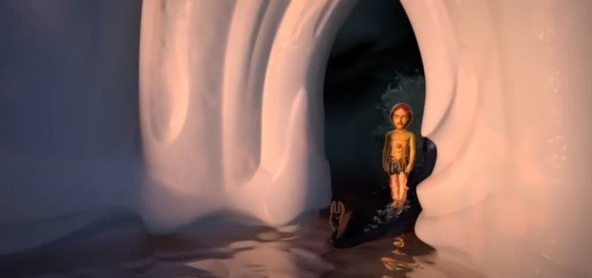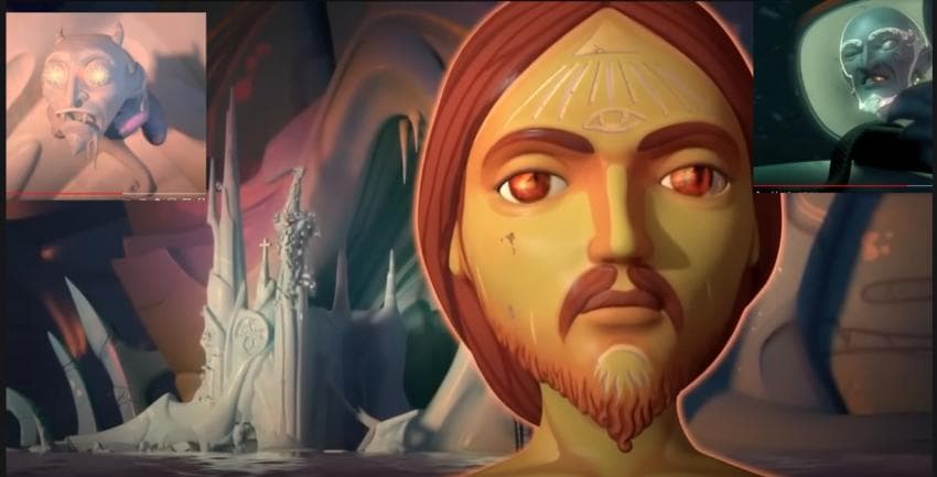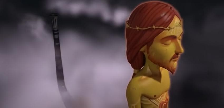 악마의? 통로를 지나서 무너지는 교회를 신경도 안쓰고 가는 예수