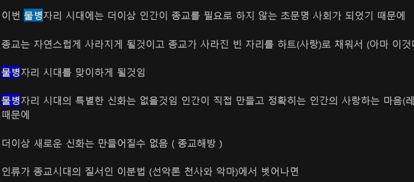 물고기자리 시대의 끝을 불로서 심판 한다고 허세 자신의 시대가 끝이니 멸망이고 심판이라고