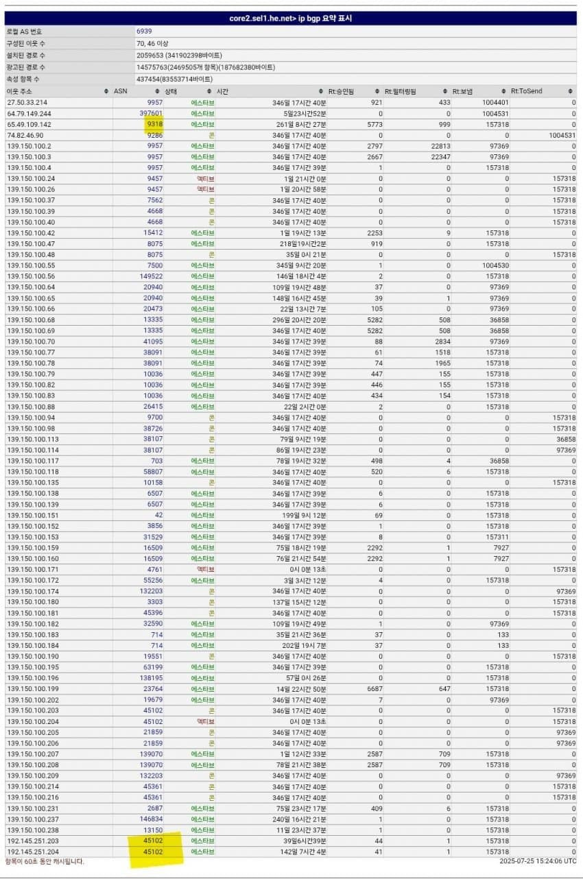 1. 알리바바 IP가 국내망을 통해 인터넷에 연결되고 있음