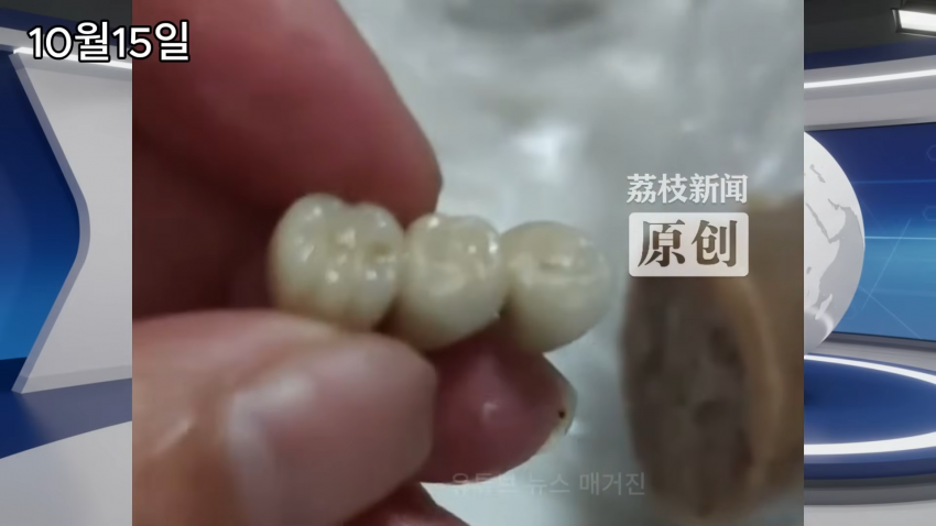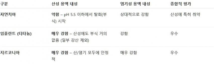 근데 치아 보철물이 뼈와 살을 녹일 정도의 산성이나 염기성 용액에도 처리되지 않고