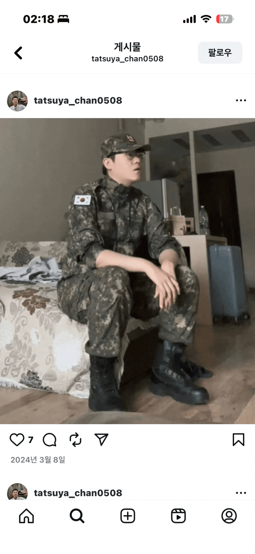 [스크랩] [일반] 중국인 100% 확실한 놈이 한국 군복 입고있네? 작성자알밤|작성시간25.10.21|조회수15 목록 댓글 0 글자크기 작게가 글자크기 크게가 이거 군복 및 군용장구의 단속에 관한 법률제 9조 1항 위반 범죄임 신고 다음검색 스크랩 원문 : 향림자 방송 다시보기 현재 게시글 추가 기능 열기 북마크 공유하기 신고 센터로 신고 댓글 댓글 0 댓글쓰기 답글쓰기 댓글 리스트