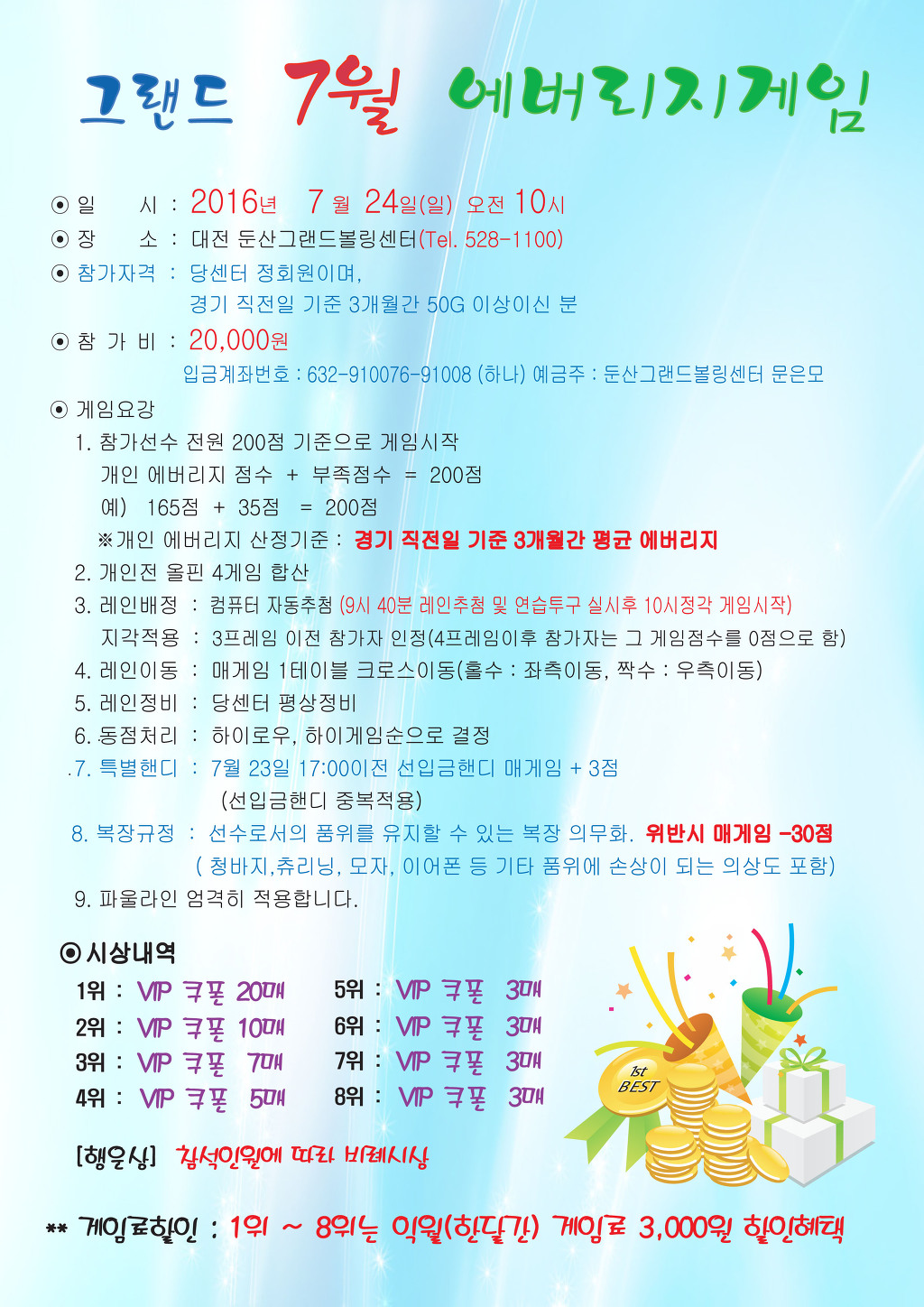2016년 7월 에버게임(7/24) 작성자김미선|작성시간16.06.30|조회수164 목록 댓글 0 글자크기 작게가 글자크기 크게가 다음검색 현재 게시글 추가 기능 열기 북마크 공유하기 신고 센터로 신고 댓글 댓글 0 댓글쓰기 답글쓰기 댓글 리스트