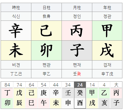 대운천간으로 계수가 투하여 병화 인수를 극하니,