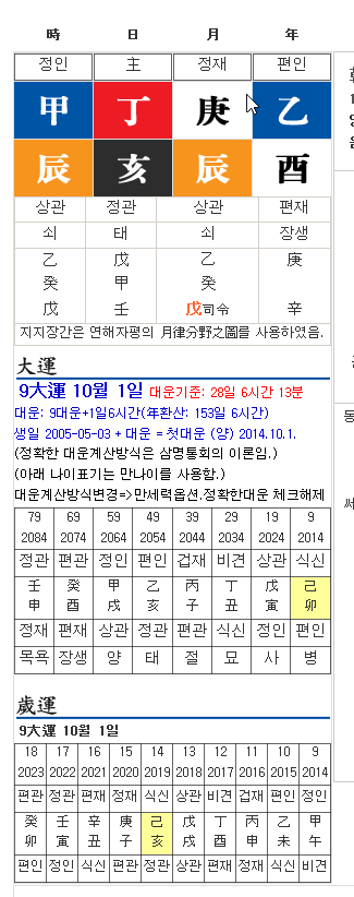 -계유,임신 관살대운에는 인용칠살, 인용정관을 이루니 만년운이 좋군요.ㅎ