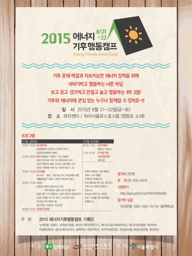 2015 에너지기후행동캠프 작성자가가멜|작성시간15.08.11|조회수86 목록 댓글 0 글자크기 작게가 글자크기 크게가 다음검색 현재 게시글 추가 기능 열기 북마크 공유하기 신고 센터로 신고 댓글 댓글 0 댓글쓰기 답글쓰기 댓글 리스트