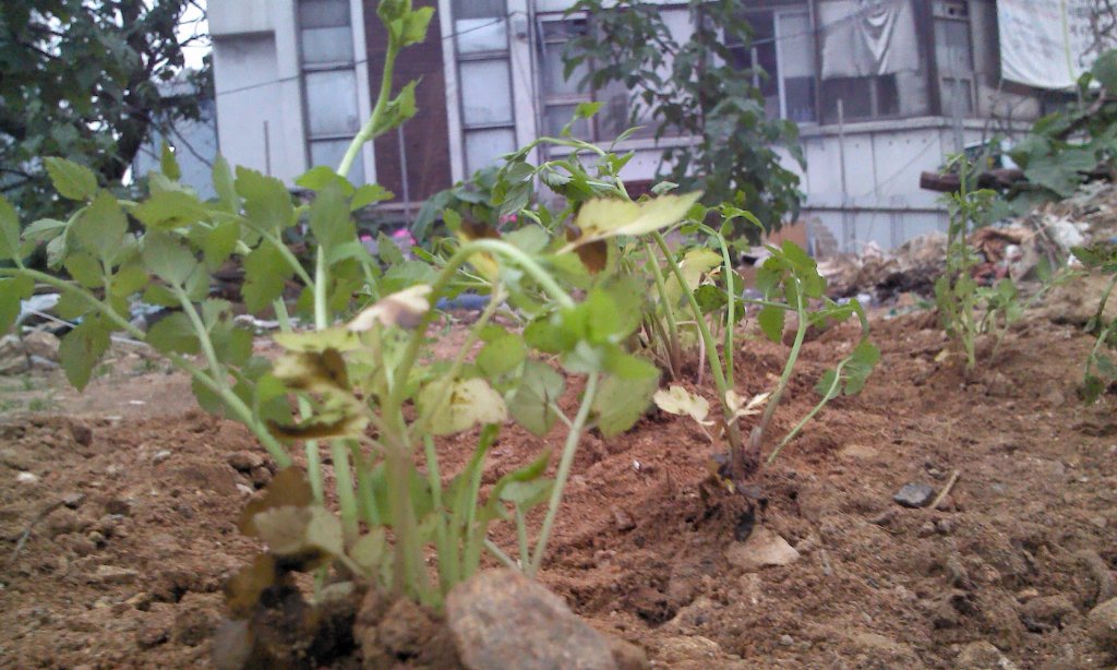 래서 두리반 텃밭에 작물이 하나 더 늘었다. 지금 이곳엔 고추, 상추, 오이, 시금치, 쑥갓, 돌미나리가 자라고, 온갖 벌레들이