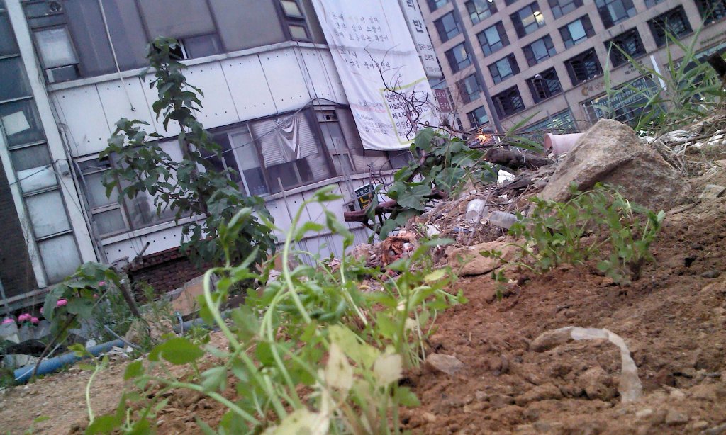 늘어져 있는 쓰레기와 잡동사니, 건축폐기물들을 걷어내고, 돌을 골라내고, 흙을 고르고, 잘 갈아주었다. 원래 건물이 있던 자리여서