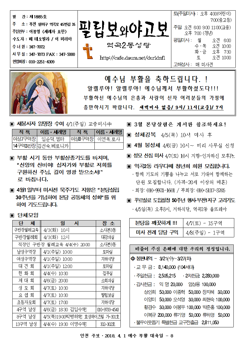 주님 부활 대축일 (2018.04.01.) 작성자가타리나|작성시간18.03.30|조회수254 목록 댓글 0 글자크기 작게가 글자크기 크게가 다음검색 현재 게시글 추가 기능 열기 북마크 공유하기 신고 센터로 신고 댓글 댓글 0 댓글쓰기 답글쓰기 댓글 리스트