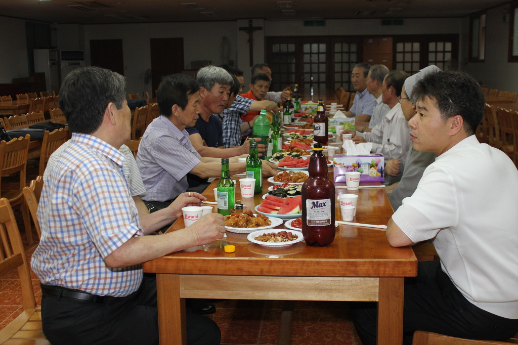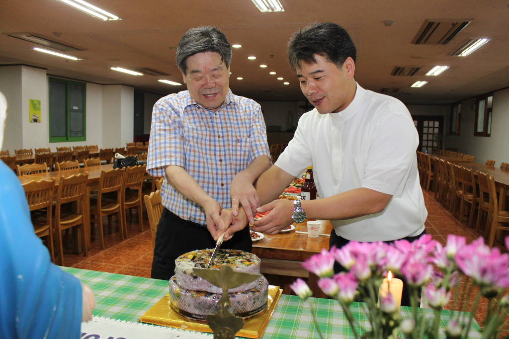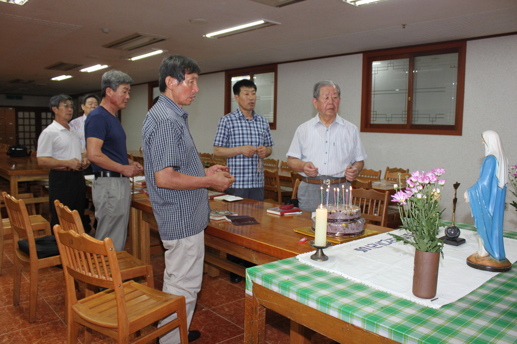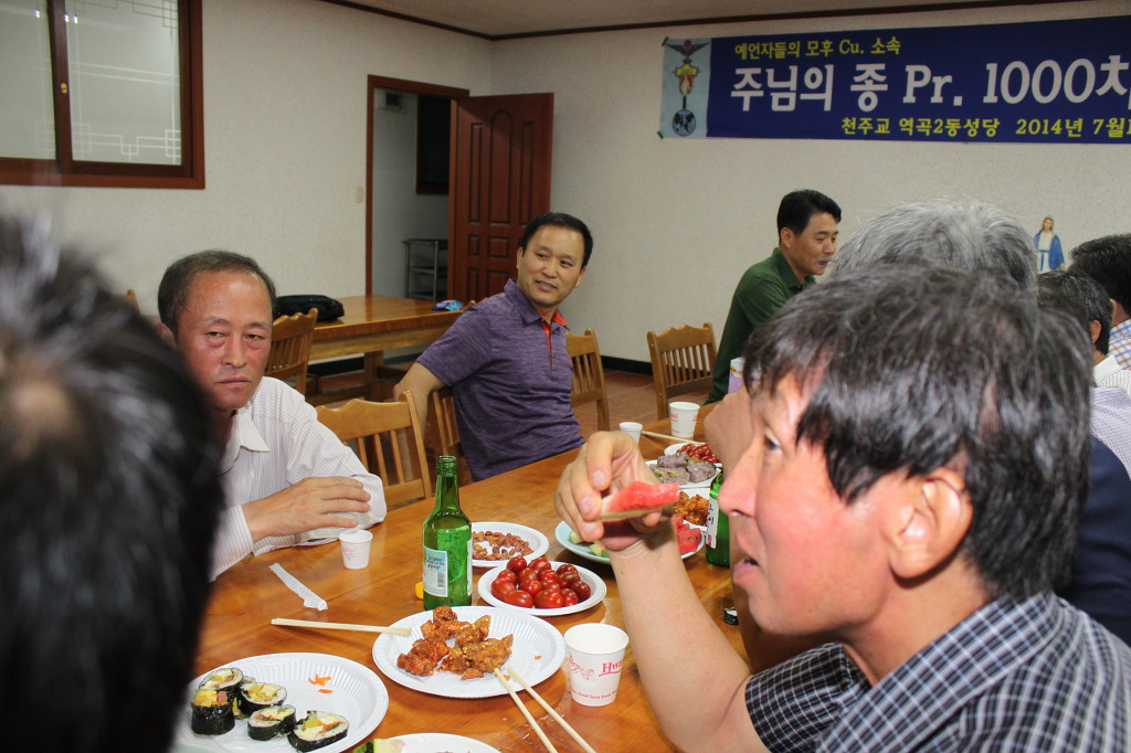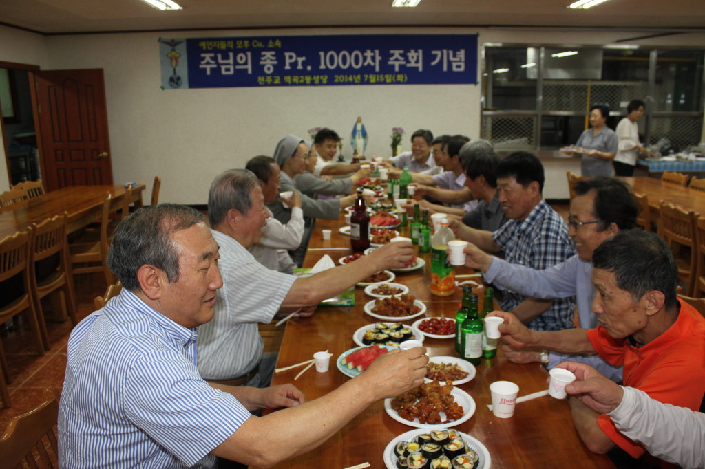 성모님 앞에서 천차주회를 자축하며 레지오 단원들은 주회를 아주 기쁘고 행복하게 바치고 신부님과 수녀님들 그리고 전임 단원및 전 꾸리아 단장(현 꼬미시움 단장) 박경석 다니엘님과 서기 장정순 세실리아님을 초대, 축하 케익과 다과로 즐거운 시간을 보냈습니다.