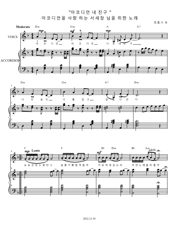 개요:2022년 12월10일 최홍기가 아코디언을 사랑하는 나를 위해 헌정한 곡