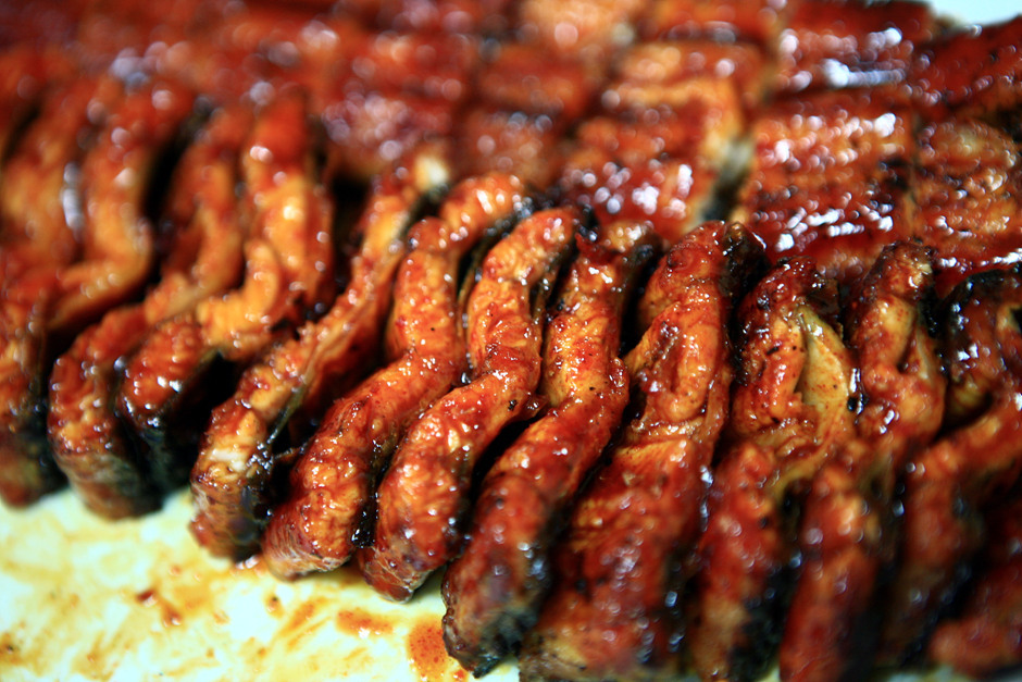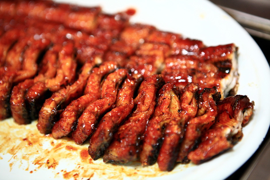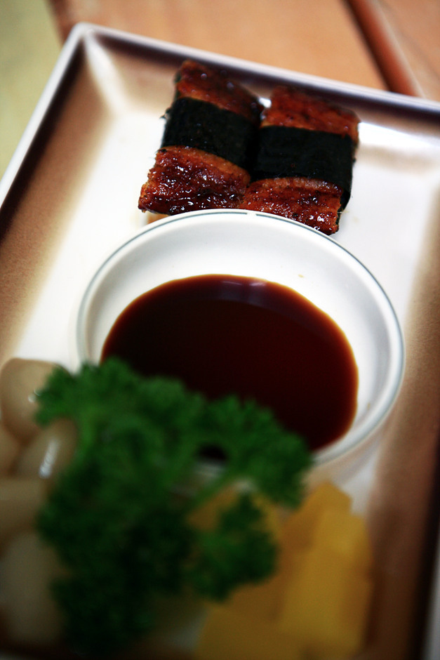 10년이 넘는 세월동안 연구를 거듭해 자체개발한 한방소스입니다. 장어가 나오기 전에 살짝 찍어서 맛을 봅니다. 맛이 강해보이는 색상과는 달리 그 향이 은은하고 향긋합니다. 식사가 끝날때 쯤 사장님과 대화를 할 기회가 있었는데 이 소스를 사가서 영업하는 장어집이 꽤 된다고 하더군요. 앞으로 소스대량생산체제를 갖추어 본격적으로 소스공급업을 준비하고 있다고 하시네요. 소스의 맛에서 충분한 성공 가능성을 읽었습니다. 보통 이런경우 음식점의 전통이 30년이므로 소스를 30년간 연구했다고 말씀하시는 경우가 대부분인데, 10여년이라고 하시며 그 전에는 대충(?)만들어 사용했다고 하시네요. 대충은 아니겠죠...^^ 대화속에서 사장님의 진솔함을 느낄수 있었습니다.