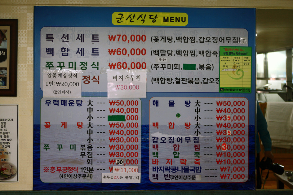 허탈한 마음으로 8시가 다 되어서 저녁식사를 하러 갔습니다. 이 음식점의 메인 메뉴는 충무공밥상(11,000원 / 1人)이라고 합니다. 원래는 4인부터 주문 가능하다고 해서 3명이 4인분을 주문하려 했으나 일행이 3명이냐 물어보시더니 3인분 주문도 가능하다 하시네요.